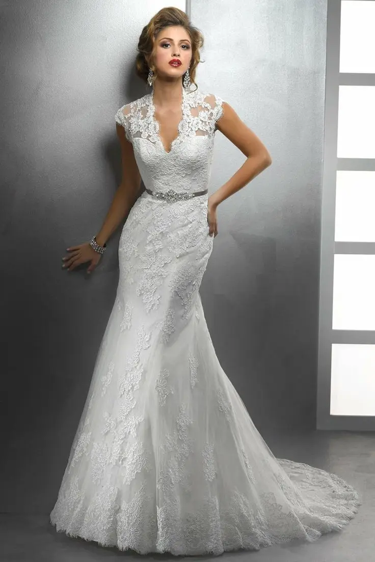 Hairstyle For V Neck Wedding Dress. This is a very versatile neckline to pair with hairstyles. A half up half down hairstyle or loose hair with big curls on both sides will work well with the V neck.